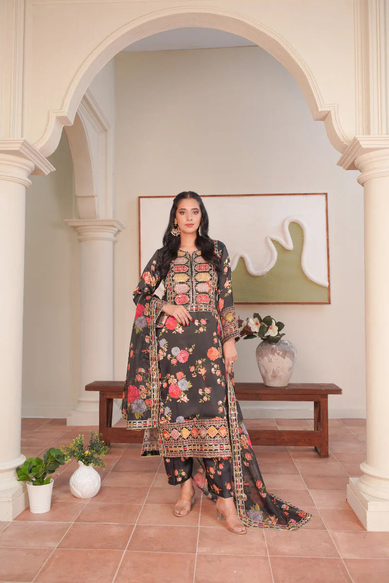 Winter - Luxury Silk Dress - 3Pc Printed Dress